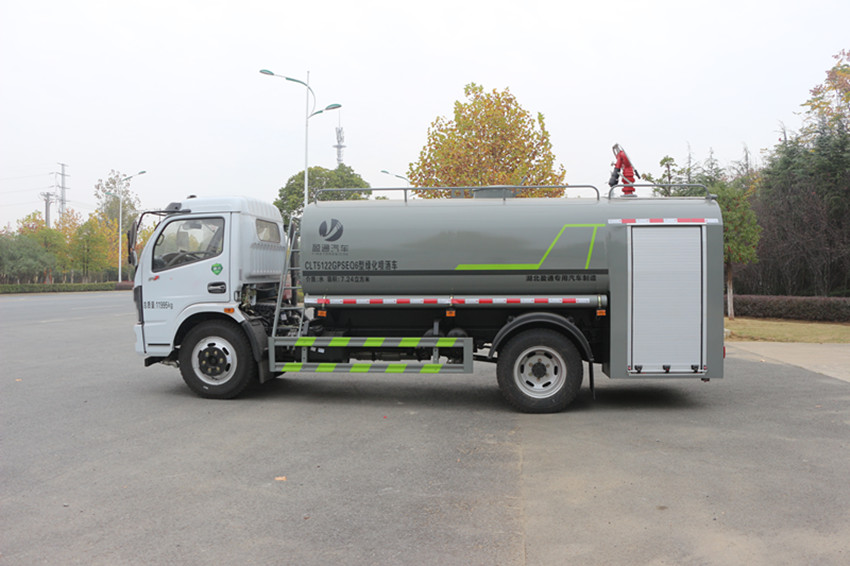 東風(fēng)灑水車采用東風(fēng)新款專用底盤,白色排半可前翻駕駛室,玉柴185馬力國五發(fā)動機(jī),陜齒八檔變速箱,軸距3800mm,9噸后橋,825R20原廠鋼絲胎,原廠abs,帶方向助力,離合助力器,氣剎制動。