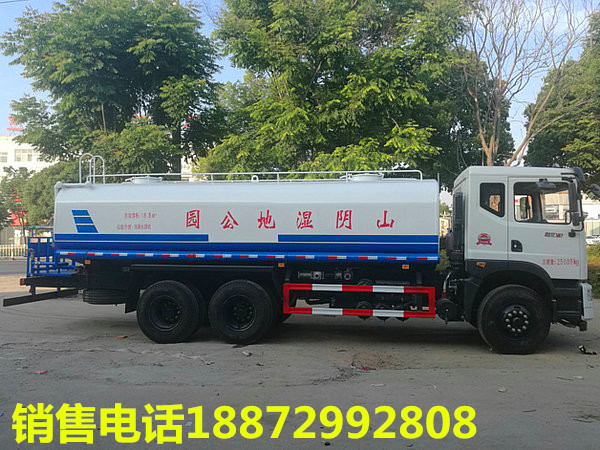 隨底盤選裝駕駛室;選裝側噴及農藥炮;品名:;密度:1000千克/立方米;有效容積:15.6立方米;罐體外形尺寸(×長軸×短軸)(mm):6600×2300×1500;ABS吸程≧7米,灑水寬度≧14-16米,射程25-30米,引水時間<5min,流量60m3/h。前沖()、后灑、帶側噴(花灑)、帶后工作平臺、平臺上安裝綠化灑水高炮(炮噴射形狀可調節:直沖、大雨、中雨、毛毛雨、霧狀、可連續調節,360°旋轉),配消防接口,自流閥,濾網,帶自吸自排功能配備大功率專用灑水泵,泵可自吸自排,安裝過濾網,帶消防接口,可通過消防栓進水,帶自流閥,隨車選裝20米綠化卷盤,可噴灑農藥,罐體金屬漆。罐體有橢圓和方圓罐兩種,可根據用戶的要求定做。