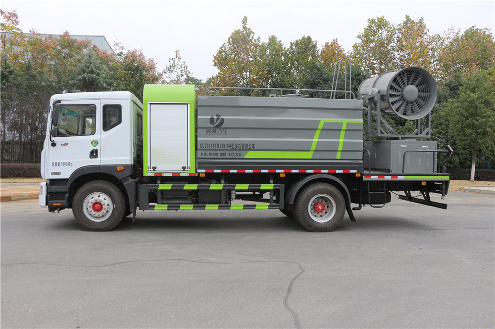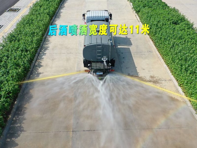 霧炮車(chē)專(zhuān)用功能配置:罐體實(shí)際容積約為11-12立方米,公告有效參數(shù)11立方米、采用武鋼優(yōu)質(zhì)碳鋼板卷壓成型。配備專(zhuān)用灑水泵,前噴后灑、左右對(duì)沖、側(cè)噴、后工作平臺(tái)及灑水高壓炮。灑水泵自吸高度為6米左右,整車(chē)灑水寬度14米左右,后工作平臺(tái)水炮可調(diào)成:直沖狀、大雨、中雨、霧狀,有效射程≥28米,后主管道帶一個(gè)一寸澆花接口、整車(chē)帶接頭、水位計(jì),自流閥及自吸功能。附送2根3米水管,1個(gè)爬梯,兩側(cè)及后保險(xiǎn)杠。