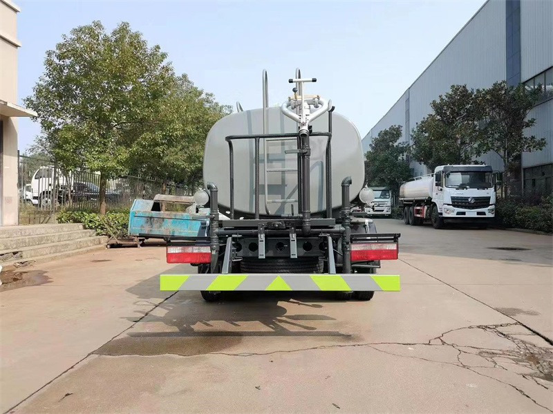 東風多利卡5噸灑水車產品標配前噴 (鴨嘴) 、后沖、后灑、側噴、后置式工作 平臺,平臺上配置綠化水炮 (可 360°旋轉,既可以調成柱狀,也可 以調成霧狀,更可以調成直沖狀、大雨、中雨、小雨、毛毛雨) ,配 備優質大功率專用灑水泵(可自吸自排,可從河里或池塘抽水到罐體), 取力器,雜物過濾網,消防接口, 自流球閥系統、取力器、球閥、濾網 均為國家標準產品,主管道加粗,法蘭墊、法蘭盤加厚,大通徑球閥。 整體具備性能優良安全可靠、效率高、流量大、維修方便等特點。