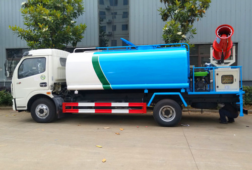 采用一類專用底盤改裝,具有操作安全可靠,水霧射程遠,用水量小等特點,該車型噴霧系統適用于城市街道霧霾治理、露天儲煤、焦、沙、石等工礦企業堆場噴霧抑塵,建筑工地、房屋拆遷改造現場、場地平整現場等噴霧降塵,公共場所、綠化園林噴藥殺菌消毒;前沖洗、后灑水以及后作業水炮適用于城市道路環保降塵、道路清洗、廣告牌清洗環保作業。左右綠化澆灌裝置可用于公路綠化帶的澆灌作業。
