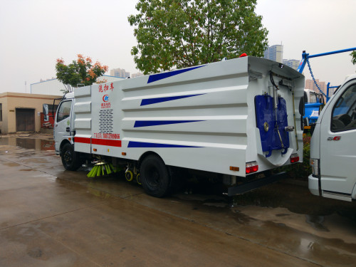1、采用吸掃結合的方式收集垃圾,濕式除塵、電液控制,液壓傾翻卸料的作業方式對路面進行清掃作業。