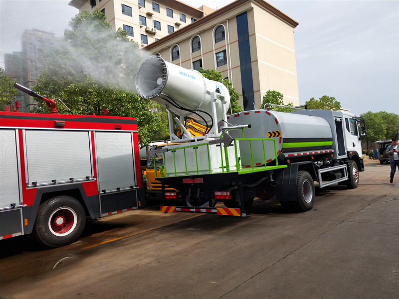 專用部分:帶前沖、后灑、側噴、后工作平臺、尾部帶綠化炮,帶自吸自排灑水泵,后工作平臺高壓水炮直沖射程25-30米(可調成:直沖狀、大雨、中雨、小雨、毛毛雨),整車帶消防接頭、自流閥。附送2根水管。加裝30型霧炮,帶8千瓦柴油發電機組,霧炮可以遙控操作。