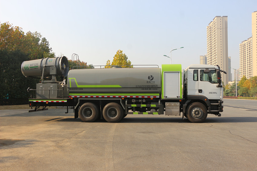 20噸灑水車罐體尾部采用大平臺,可搭載30米車載式風送噴霧機組,具有功力強、射程遠、穿透力強、霧粒附著力強、覆蓋范圍廣、可以實現精量噴霧等特點,適合風沙抑塵、工地降塵、拆遷降塵,專門用于城市開發區建設工地、拆遷工地、車站儲煤場、洗煤廠、焦化廠、鐵礦、鋼廠、港口等的揚塵風沙控制;在城市遭遇霧霾天氣、空氣質量PM2.5嚴重超標時,可隨意選定一個區域進行液霧降塵、分解淡化空氣中的顆粒濃度、將飄浮在空氣中的污染顆粒物、塵埃等迅速逼降地面,達到治理凈化空氣的明顯良好效果。