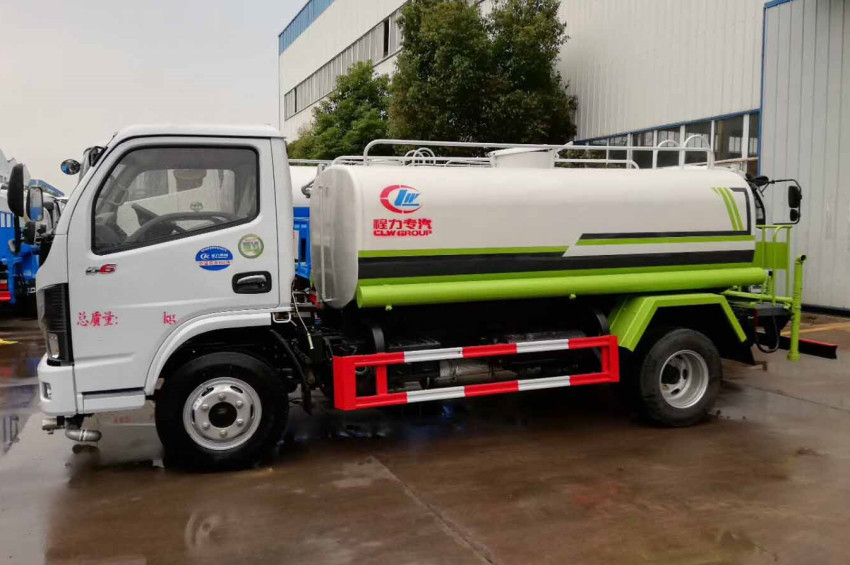 東風藍牌3噸灑水車上裝配置:罐體采用4mm厚武鋼集團供應的罐車專用板材制作,實際容積2立方,罐內防浪隔板具有防波作用,減低罐內液體的沖擊。配備65QZ-40/45型大功率灑水車專用水泵,可自吸自排,引水時間<8min,流量40m3/h,揚程45米。其它專用部分標配為:前沖、后灑、側噴、后工作平臺帶360度可調節綠化水炮,垂直吸程≧7米,灑水寬度≧14-16米,綠化水炮射程≧20-25米,自流閥、濾網、消防接口(可連接消防栓取水,可作應急消防用)。罐前量管(觀察罐內水位)、罐后爬梯、罐上罐口帶簡易護欄、罐側雙炮筒,罐體表面雙層油漆工藝,防銹、耐腐蝕,其余有廠家標配。可選擇加裝加裝藥盤、氣動控制閥、噴藥設備、罐內防腐等。