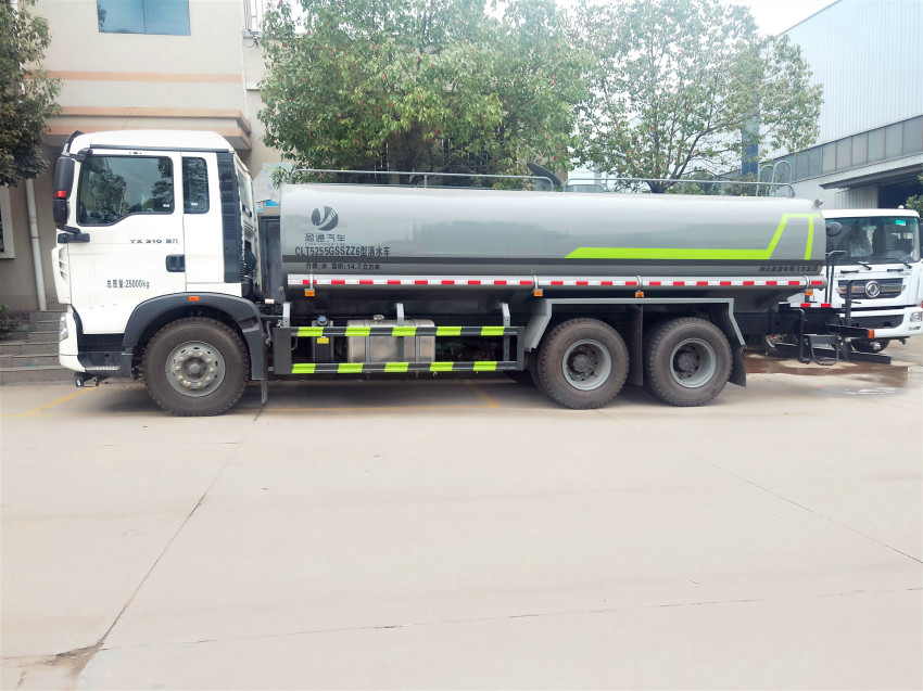 重汽20噸灑水車罐體為橢圓形或方形,采用武鋼優質碳鋼板制成,罐體倉內1.5米一道隔板,具有防波防蕩作用,還可按用戶要求進行專業的防腐防銹處理,罐體外可用發泡或巖棉加裝保溫層起保溫功能?蛇x裝藥盤,藥泵、高壓噴藥設備、非車帶泵動力等.、罐內防腐防銹、多方位進出水接頭、氣動閥、警燈等先進設施,以滿足不同用戶需求。