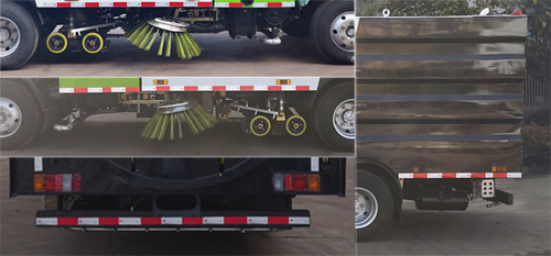 該車裝備有垃圾箱、水箱、洗掃刷等專用裝置,用于清掃、 清洗垃圾等污物;側(cè)防護(hù)由專用裝置替代,后下部防護(hù)材料為Q235A碳鋼,與副梁采用焊接連接, 截面尺寸:50×120(mm),離地面高度400mm;ABS及其控制器型號(hào)為:1、 CM4XL-4S/4M,生產(chǎn)廠家為:廣州瑞立科密汽車電子股份有限公司; 2、APG3550500A,生產(chǎn)廠家為:浙江亞太機(jī)電股份有限公司. |