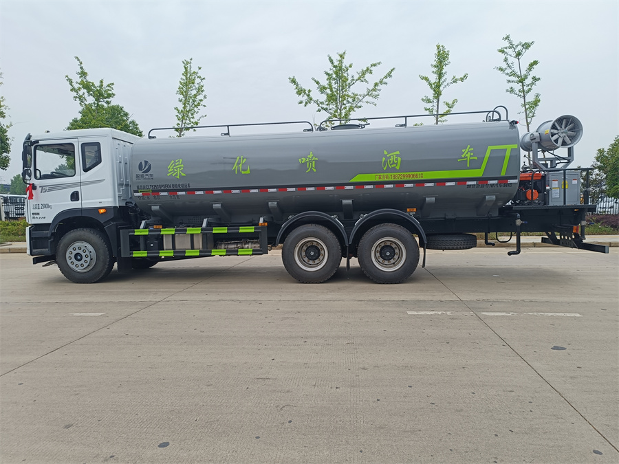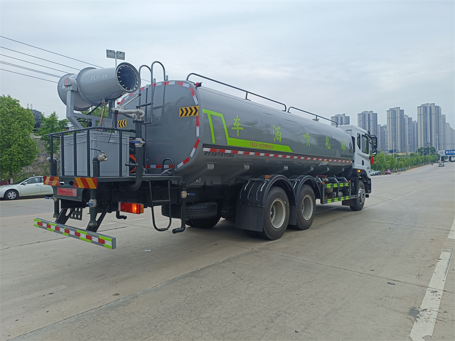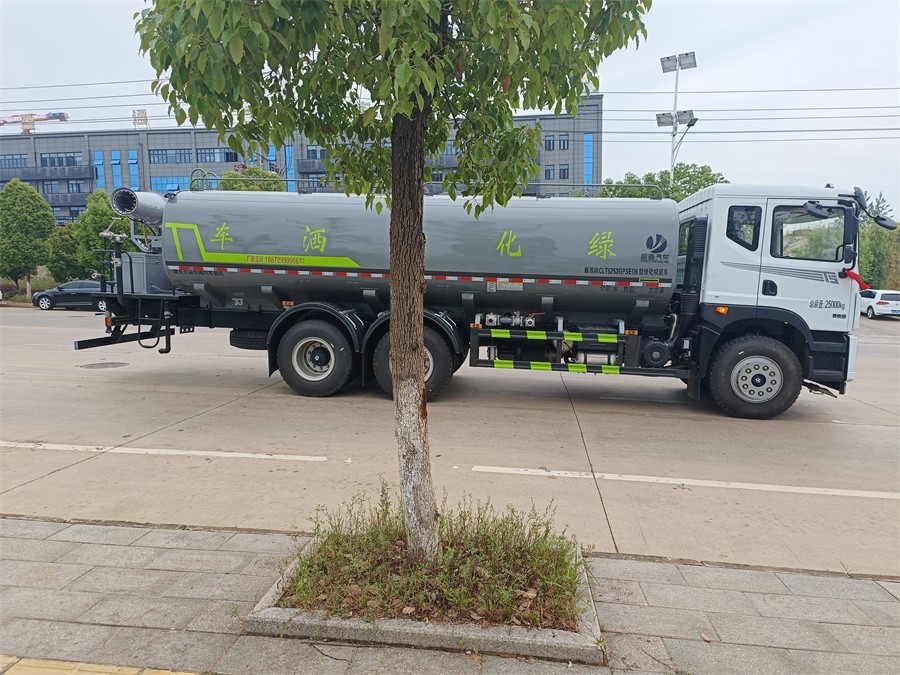 東風(fēng)新款22噸霧炮灑水車產(chǎn)品標(biāo)配前噴(鴨嘴)、后沖、后灑、側(cè)噴、后置式工作 平臺,平臺上配置綠化水炮(可 360 °旋轉(zhuǎn),既可以調(diào)成柱狀,也可 以調(diào)成霧狀,更可以調(diào)成直沖狀、大雨、中雨、小雨、毛毛雨),配 備優(yōu)質(zhì)大功率專用灑水泵(可自吸自排,可從河里或池塘抽水到罐體), 取力器,雜物過濾網(wǎng),消防接口, 自流球閥系統(tǒng)、取力器、球閥、濾網(wǎng) 均為國家標(biāo)準(zhǔn)產(chǎn)品,主管道加粗,法蘭墊、法蘭盤加厚,大通徑球閥。 整體具備性能優(yōu)良安全可靠、效率高、流量大、維修方便等特點(diǎn)。