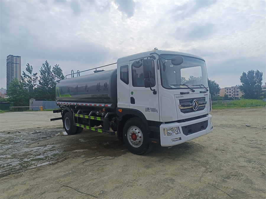 綠化噴灑車標配前噴(鴨嘴)、后對沖、 后灑、側噴、后置式工作平臺,平臺上配置綠化水炮(可 360°旋轉,既可以調 成柱狀,也可以調成霧狀),配備優質大功率專用灑水泵(可自吸自排,可從河 里或池塘抽水到罐體),取力器,雜物過濾網,消防接口,自流球閥系統、取力 器、球閥、濾網均為國家標準產品,主管道加粗,法蘭墊、法蘭盤加厚,大通徑 球閥。整體具備性能優良安全可靠、效率高、流量大、維修方便等特點