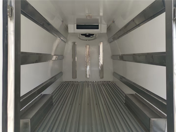 福田G7冷藏車車廂配置為:廂體采用內(nèi)外優(yōu)質(zhì)玻璃鋼板,內(nèi)膽圓弧式廂體,地板為鋁花紋板,底板和四周廂板加裝通風(fēng)槽,不銹鋼門框,鎖件。