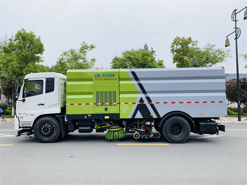 東風(fēng)18噸洗掃車,帶2個(gè)中置掃盤,天錦為康明斯170馬力副發(fā)動(dòng)機(jī);三洋馬達(dá);高壓水泵(前沖/側(cè)噴/中噴/后噴霧/沖洗水槍/垃圾箱自潔裝置);高壓路沿清洗噴頭,低壓泵(前沖);不銹鋼垃圾箱;控制器;控制箱;PLC一鍵控制;尾部LED箭頭燈;垃圾箱、水箱均帶防溢低水位報(bào)警裝置;倒車及洗掃狀態(tài)室內(nèi)監(jiān)視器。20m高壓沖洗卷盤。