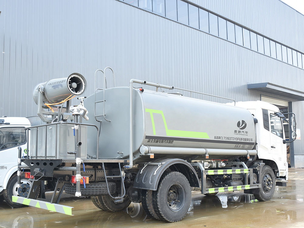 東風(fēng)天錦12方抑塵車產(chǎn)品簡(jiǎn)述 抑塵車又稱為綠化噴灑車、多功能灑水車、園林綠化灑水車。抑 塵車適合于各種路面沖洗,樹木、綠化帶、草坪綠化,道路、廠礦企業(yè) 施工建設(shè),高空建筑沖洗。抑塵也可以作為運(yùn)水車使用,最常見(jiàn)的車 型有綠化噴灑車、多功能灑水車、綠化灑水車幾大類。 我公司產(chǎn)品標(biāo)配前噴(鴨嘴)、后沖、后灑、側(cè)噴、后置式工作 平臺(tái),平臺(tái)上配置綠化水炮(可 360°旋轉(zhuǎn),既可以調(diào)成柱狀,也可 以調(diào)成霧狀,更可以調(diào)成直沖狀、大雨、中雨、小雨、毛毛雨),配 備優(yōu)質(zhì)大功率專用灑水泵(可自吸自排,可從河里或池塘抽水到罐體), 取力器,雜物過(guò)濾網(wǎng),消防接口,自流球閥系統(tǒng)、取力器、球閥、濾網(wǎng) 均為國(guó)家標(biāo)準(zhǔn)產(chǎn)品,主管道加粗,法蘭墊、法蘭盤加厚,大通徑球閥。 整體具備性能優(yōu)良安全可靠、效率高、流量大、維修方便等特點(diǎn)。